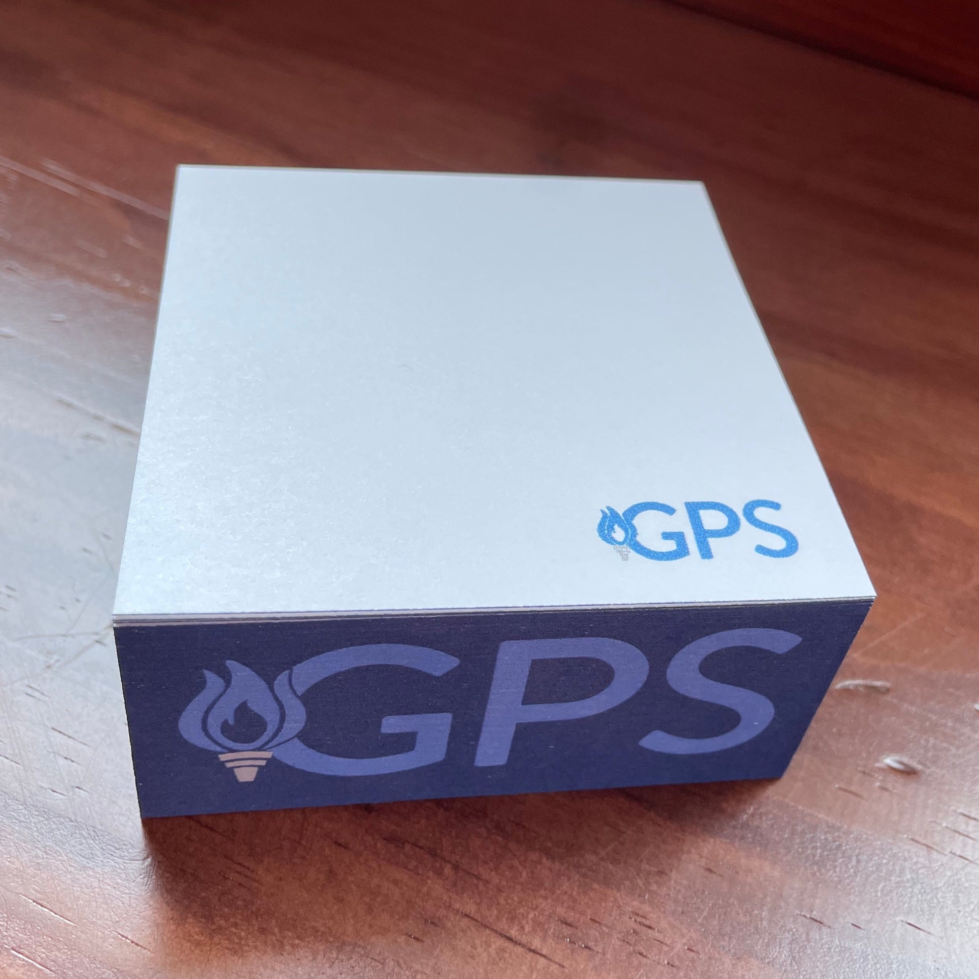 3X3X1.5 pad with adhesive sheets. Torch logo on four sides and sheet face.