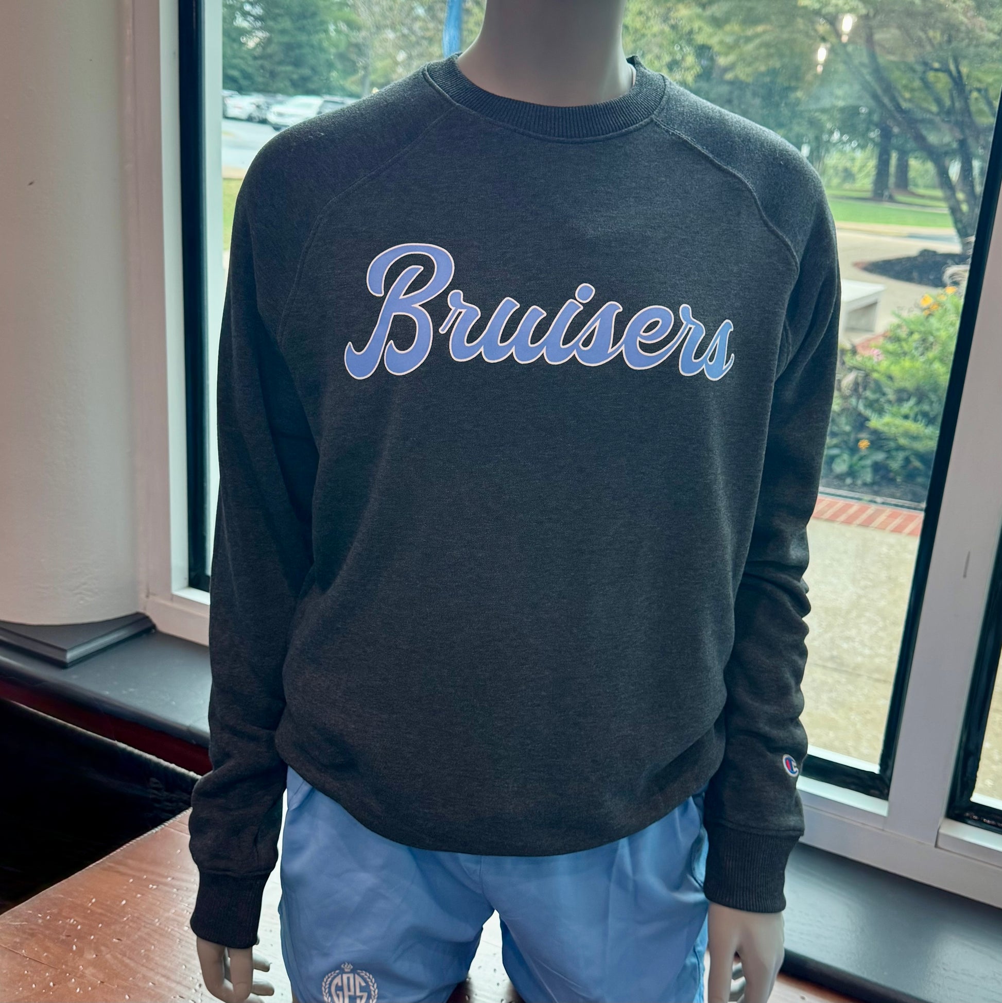 Heather Black Slate, Triumph Team is the softest sweatshirt you will own. Raglan sleeves make sizing a breeze. Team script logo in Bruiser Blue.